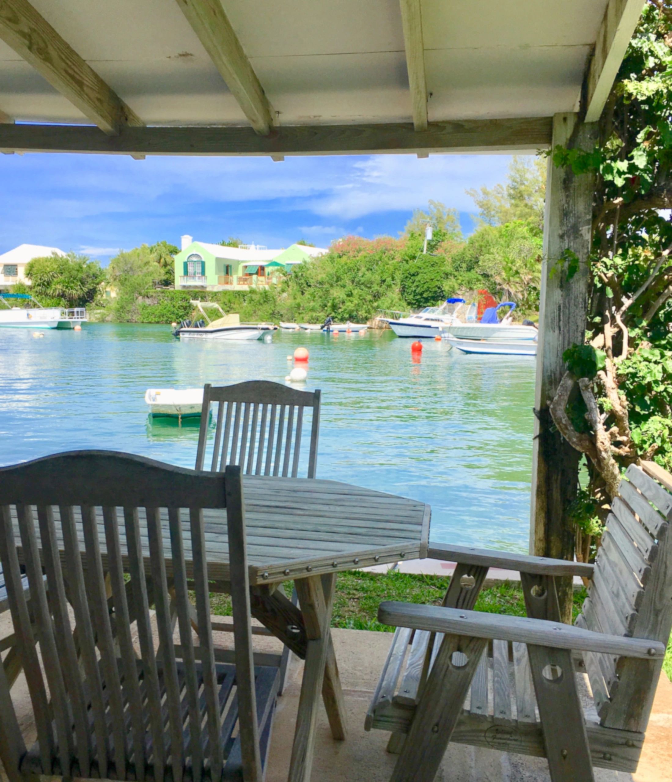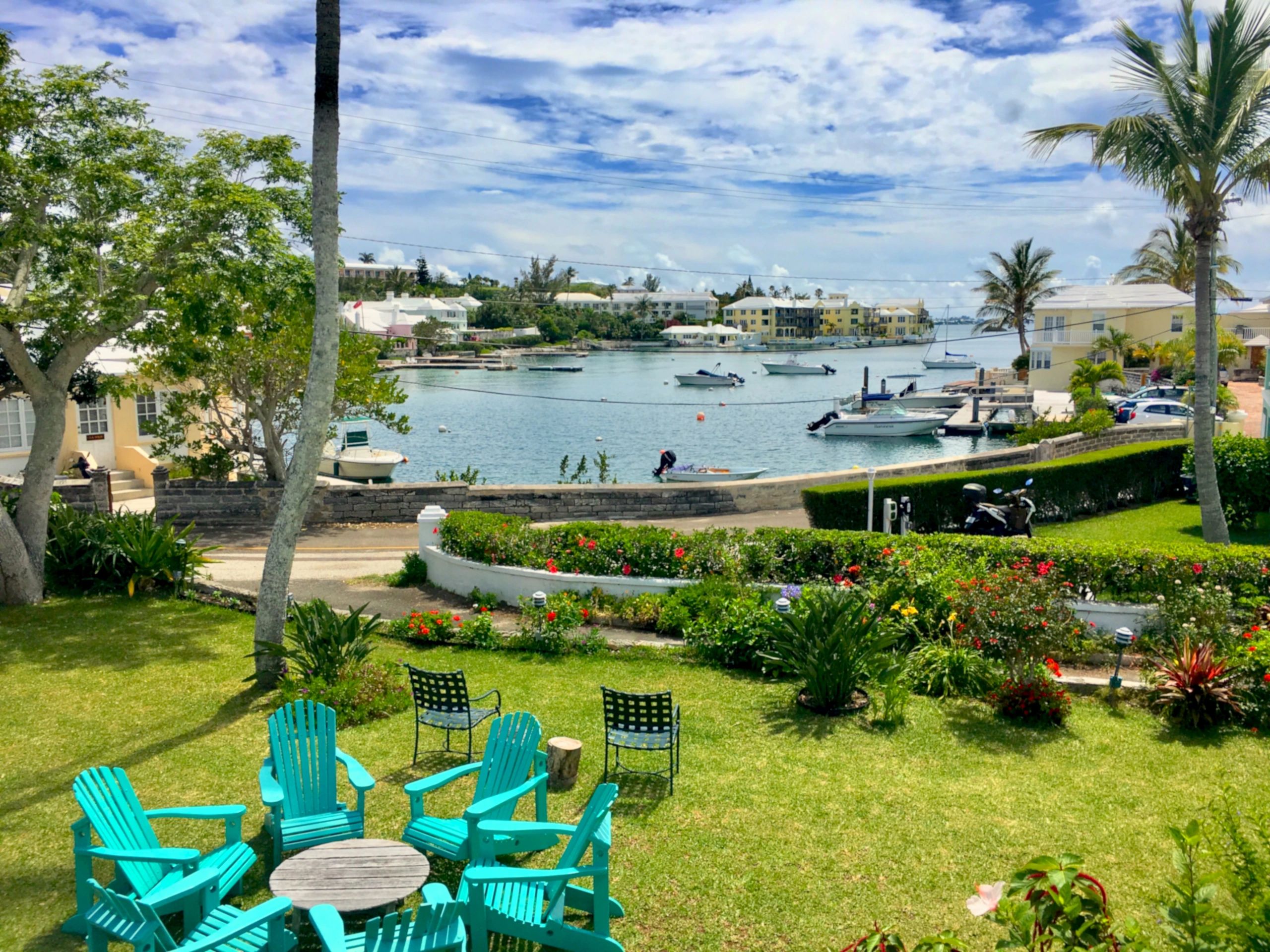 There are three rooms in the main house, "The Tower", "The Large Twin" & "Solo Room", as well as two waterside cottages, "Pinpoint A" & "Pinpoint "B". They all have air conditioning, as well as ceiling fans. There is also free Wi-Fi throughout the guest house & the front & back gardens. A fully equipped kitchen adjoins the large guest's lounge, & the three rooms in the main house share it. The Guest lounge has a working fireplace, comfy armchairs, a large couch, cable TV, a Bermuda cedar dining table which seats 10 comfortably, & a sun room.